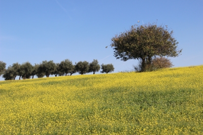 ODIVELAS - FERREIRA DO ALENTEJO Walking Tour "Rota da Água de Odivelas" - "Water Route of Odivelas" 11,3Km - Low difficulty - Accessible to all walkers These are the great plains that once glowed in the sun with the golden mantle of cereals, dotted with centenary olive groves and scattered holm oaks. Currently the landscapes are becoming greener with the successive advances in irrigation and extensive olive groves, orange groves and almond trees appear. At the top of the hill, Aldeia de Odivelas is vigilant over all these fields and over the stream that it gives its name to, which has always been the reason for settling the inhabitants of this territory. |
