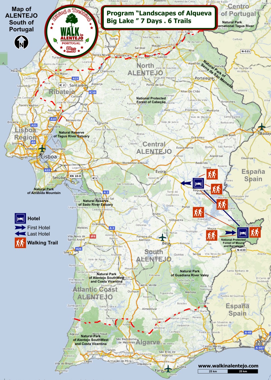 | Walking Tour "Rota da Água de Moura" - "Water Route of Moura" 8,5Km - Low difficulty - Accessible to all walkers In Moura we find the soul of several centuries of history and stories. Starting with the legend of Moura Salúquia, who threw herself from the tower when she becomes aware of the cloaked attack of the Christians after ambushing her loved one. The territory, which today borders the Guadiana river right after the Alqueva Dam, was strategic in all struggles for Christianization, as well as those of restoration and liberal wars. The landscape is marked by the famous olive groves, which produce the olives that give rise to the finest olive oils. |